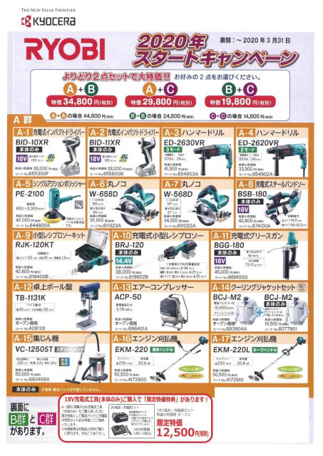 RYOBI(京セラインダストリアルツールズ)の2020年スタートキャンペーン開催中です。